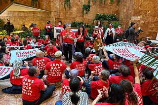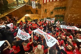A couple hundred pro Palestine protestors inconspicuously walked into Trump Tower this morning.