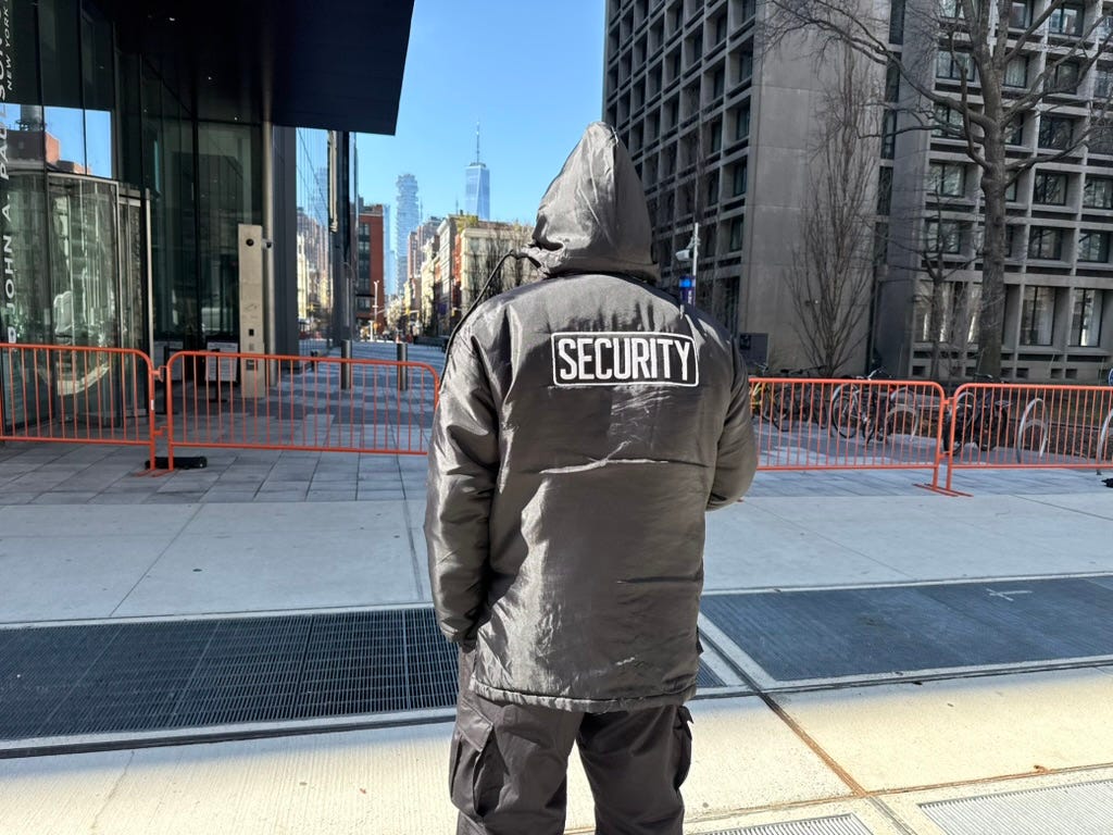 “They don’t want anybody going through here and doing a protest,” the security guard elaborated.